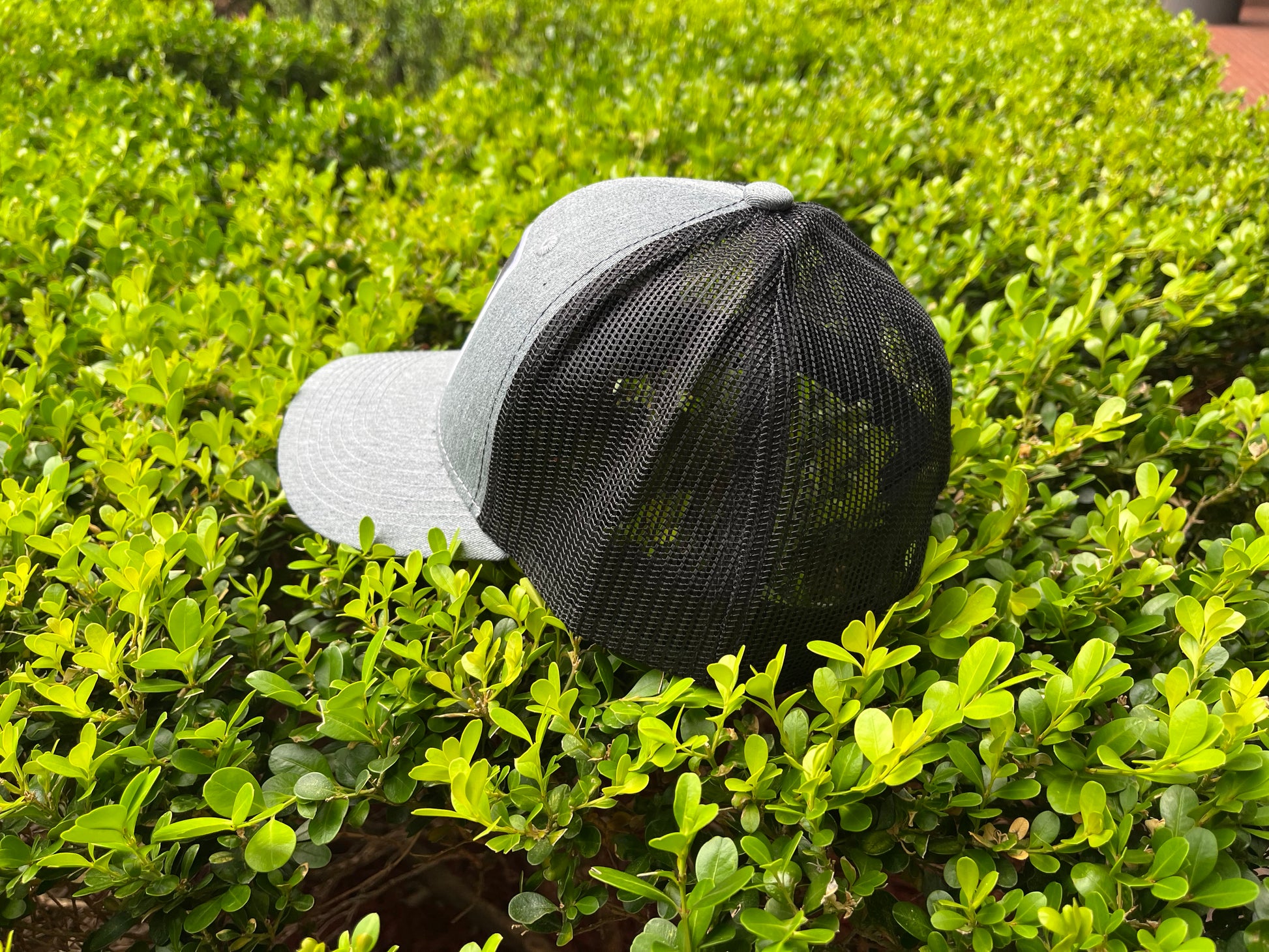 This mid-crown, structured cap features a black mesh back—for ventilation!—with a plastic strap closure, a heather gray front with The Cliburn signature VC logo in white on a felt-embroidered patch. The seam tape inside the cap is printed with The Cliburn logo as well—an extra custom surprise on this attractive, modern hat!