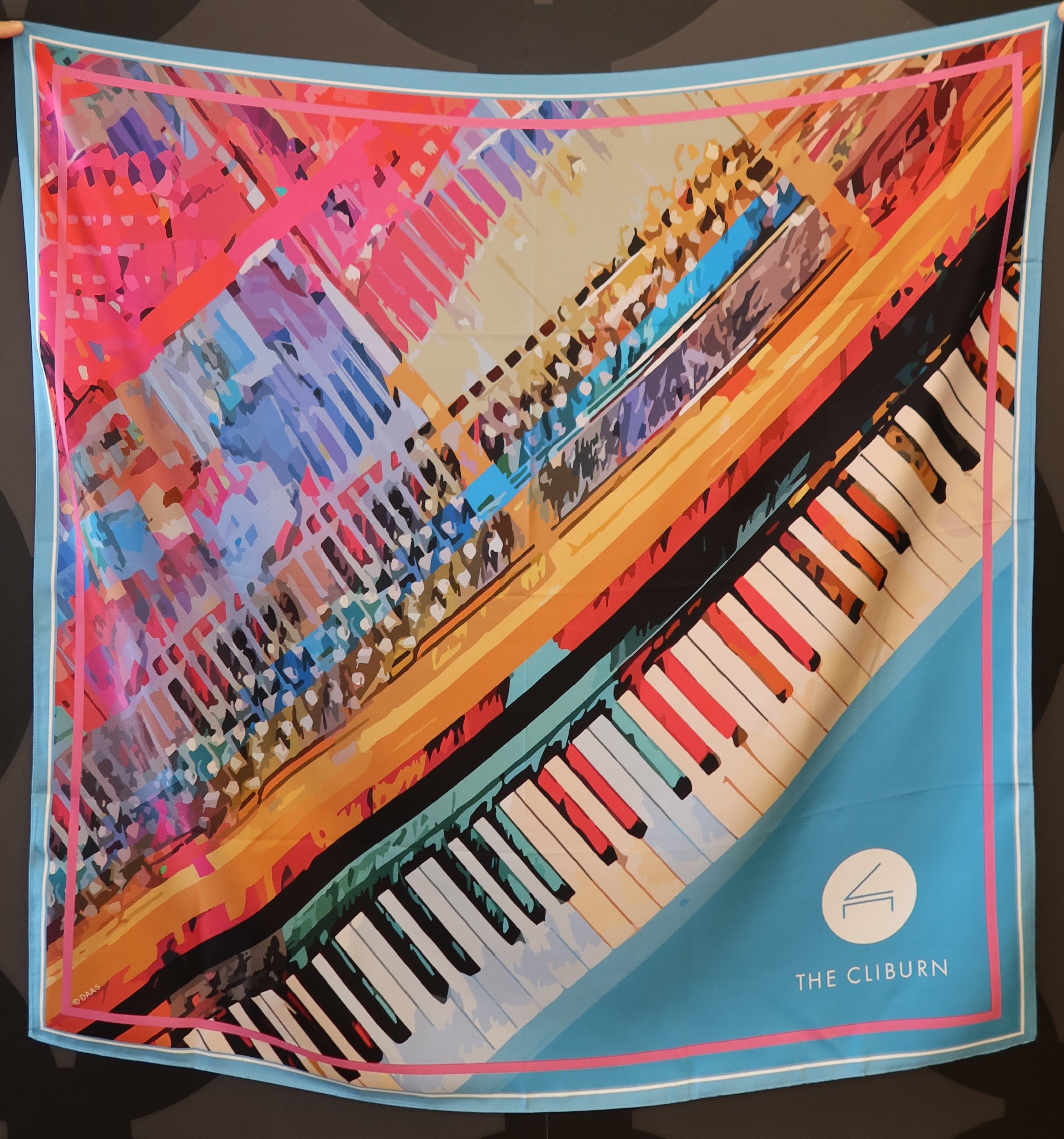 Wrap yourself in art with this stunning 100% Silk Twill scarf featuring the vibrant "Chromesthesia" 2025 Cliburn Competition Artwork. Designed in collaboration with Fort Worth-based Brooke Wright of Brooke Wright Designs, this piece transforms the dynamic competition artwork by DAAS into an elegant, wearable statement.