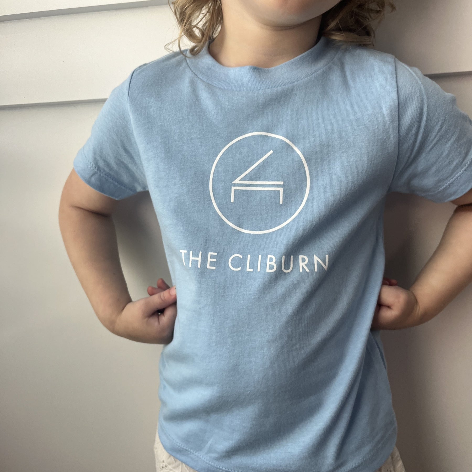 Celebrate your youngest music lovers with the Cliburn Kids Blue Shirt. This soft, light blue toddler tee features the iconic Cliburn logo in bold white across the front, making it a playful and stylish way for kids to show their love for music.