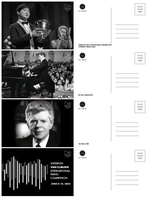 Since its inaugural competition in 1962, the quadrennial Van Cliburn International Piano Competition has inspired audiences both locally and internationally. This postcard set is a tangible celebration of that legacy, letting you hold a piece of Cliburn history in your hands.